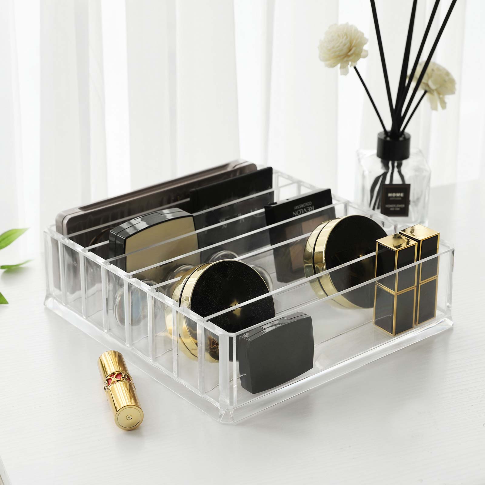 Tikras akį traukiantis elementas ant stalo ar vonioje. Akrilo medžiaga sukuria krištolinio stiklo įspūdį ir suteikia geresnę apžvalgą, elegantiška ir praktiška. Dėl skaidraus dizaino organizatorius tinka bet kokiai gyvenamajai aplinkai ir randa savo vietą visur, pavyzdžiui, biure, vonioje, svetainėje, vaikų kambaryje ir kt. Permatomas SONGMICS organizatorius yra naudingas mažas pagalbininkas kasdieniame gyvenime.