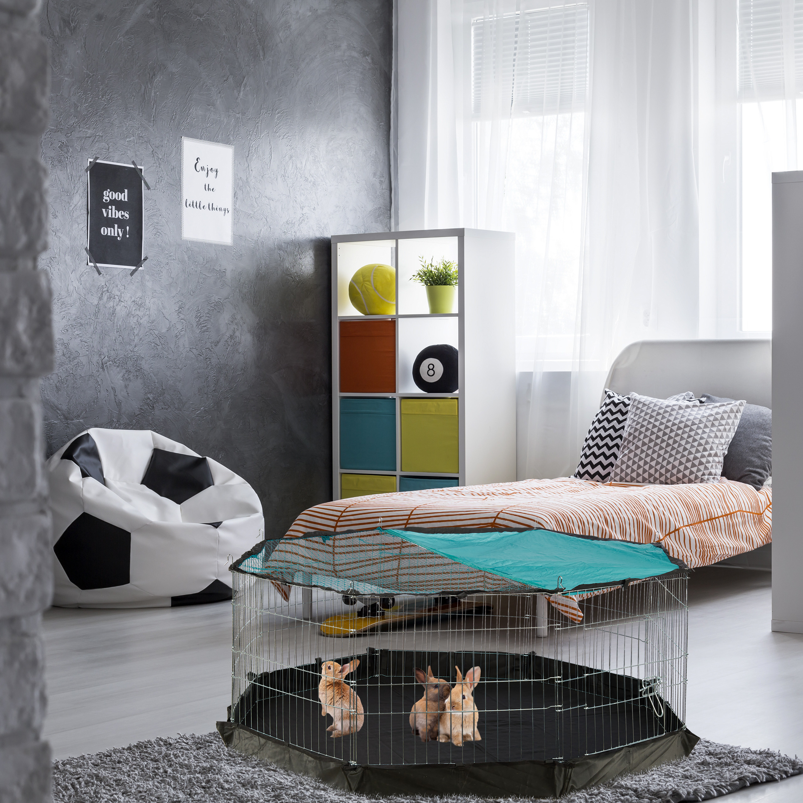 - Plėtra: Galimybė išplėsti narvą laisvu bėgimu užtikrina daugiau judėjimo laisvės jūsų augintiniams.