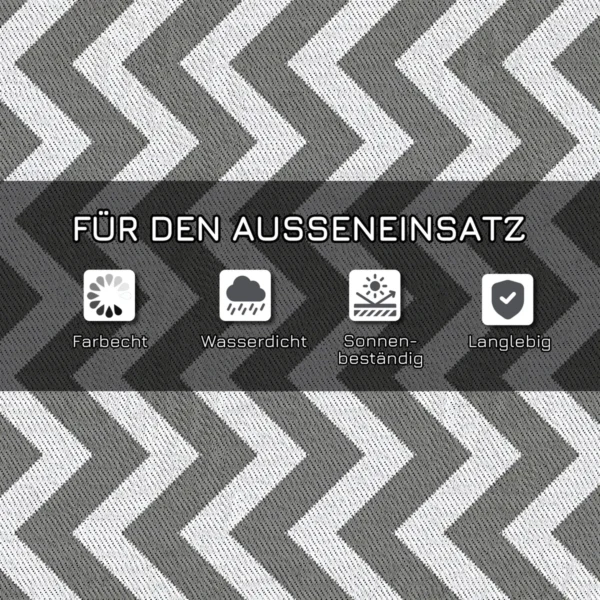 Suteikite savo terasai ką nors šio rafinuoto Outsunny dvipusio lauko kilimėlio. Jis ne tik dekoratyvus ir išskirtinai tvirtas, bet ir nejautrus vandeniui ar saulei. Taip pat puikiai išpjauna figūrą namelyje ant ratų, paviljone ar žiemos sode ir stilingai praskaidrina nuotaiką kambaryje. Kai jums to pakanka, galite tiesiog apversti kilimėlį ir pasirinkti kitą spalvų schemą.