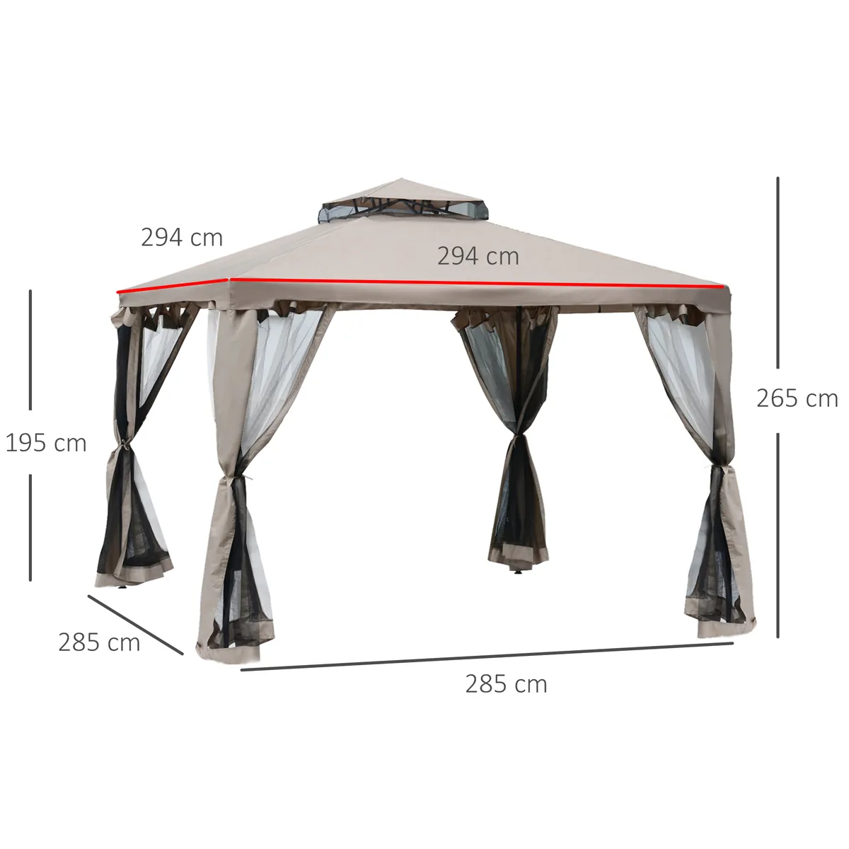 Ši prašmatni Outsunny pavėsinė savo elegantišku ir apgalvotu dizainu pavers jūsų lauko erdvę praktiška ir stilinga susitikimų vieta. Vandenį atstumiantis stogas apsaugo jus nuo UV spindulių ir stiprių saulės spindulių, tačiau yra atsparus šviesai. Milteliniu būdu dengtas plieninis rėmas ir dengtas poliesterio stogas jums puikiai tarnaus ilgus metus. Suplanuokite kitą sodo šventę su naujuoju paviljonu dabar ir mėgaukitės šiltuoju metų laiku iki soties!