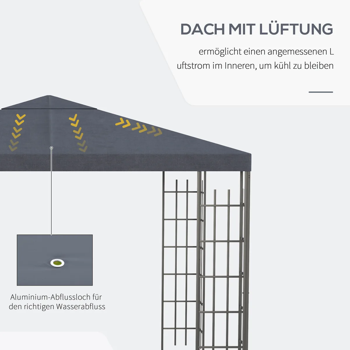 Ši „Outsunny“ 3 m x 3 m pavėsinė yra puikus būdas papuošti savo lauko erdvę elegancija ir sukurti atpalaiduojančią poilsio zoną. Sodo paviljonas siūlo saugią apsaugą nuo saulės karštomis vasaros dienomis, o tvirtas plieninis rėmas užtikrina didelį stabilumą ir stabilumą. Stogas pagamintas iš padengto poliesterio, jame yra ventiliacijos anga ir aštuonios kanalizacijos angos lietaus vandeniui nutekėti. Dabar niekas netrukdo jūsų sodo vakarėliui!