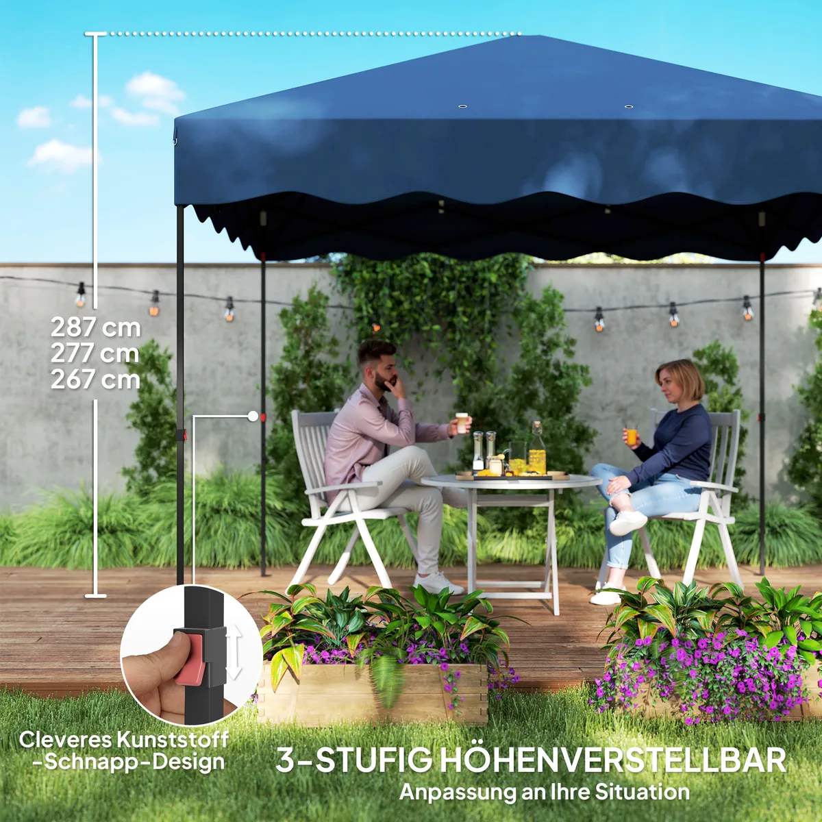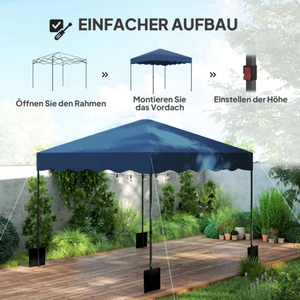 • ✔ Išskleidžiamas sulankstomos pavėsinės dizainas užtikrina greitą pastatymą ir išmontavimą.