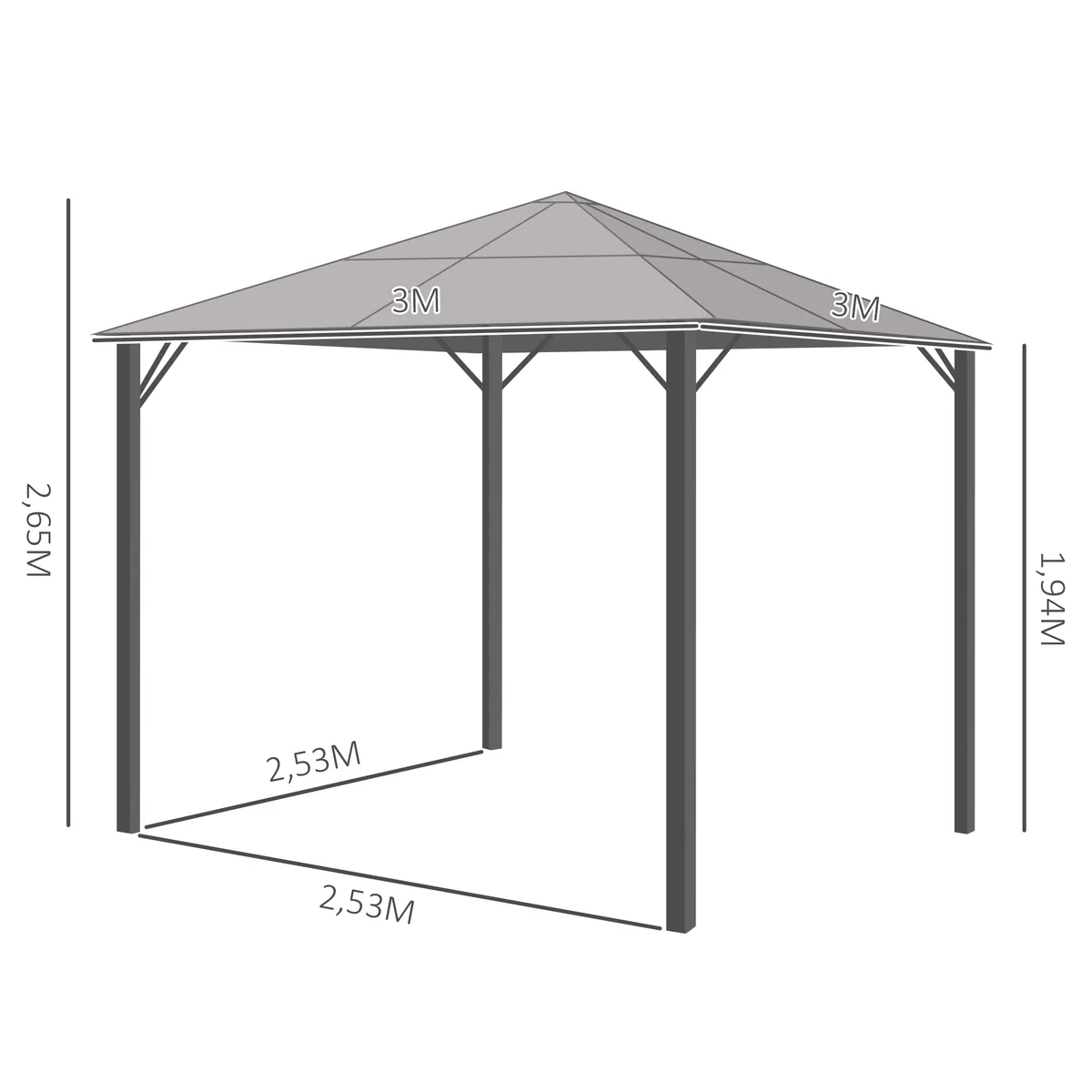 - ✔ Matmenys: 300L x 300W x 265H cm