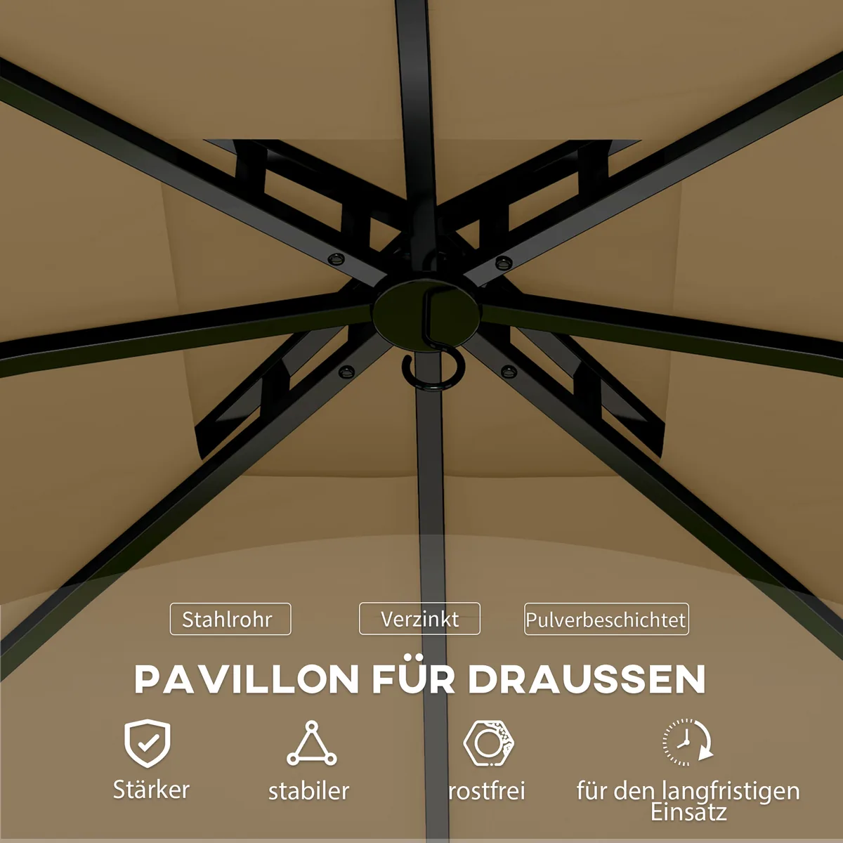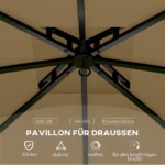 Patirk gamtos magiją elegantiškame Outsunny paviljone. Su neplyštančiu stogu, kuris apsaugo nuo saulės ir stilingais, permatomais arkiniais langais, ši pavėsinė ne tik traukia akį, bet ir labai praktiška. Tvirtas, milteliniu būdu dengtas metalinis karkasas ir novatoriška dviejų pakopų stogo konstrukcija užtikrina optimalią oro cirkuliaciją ir apsaugo jus nuo stichijų – puikiai tinka terasai, sodui ir kitoms lauko erdvėms.