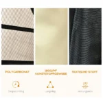 - ✔ Užuolaidos gali būti uždaromos arba nuimamos įvairiai ir susideda iš dviejų dalių: nepermatomo poliesterio (išorėje) ir tinklelio, pagaminto iš nailono (viduje)