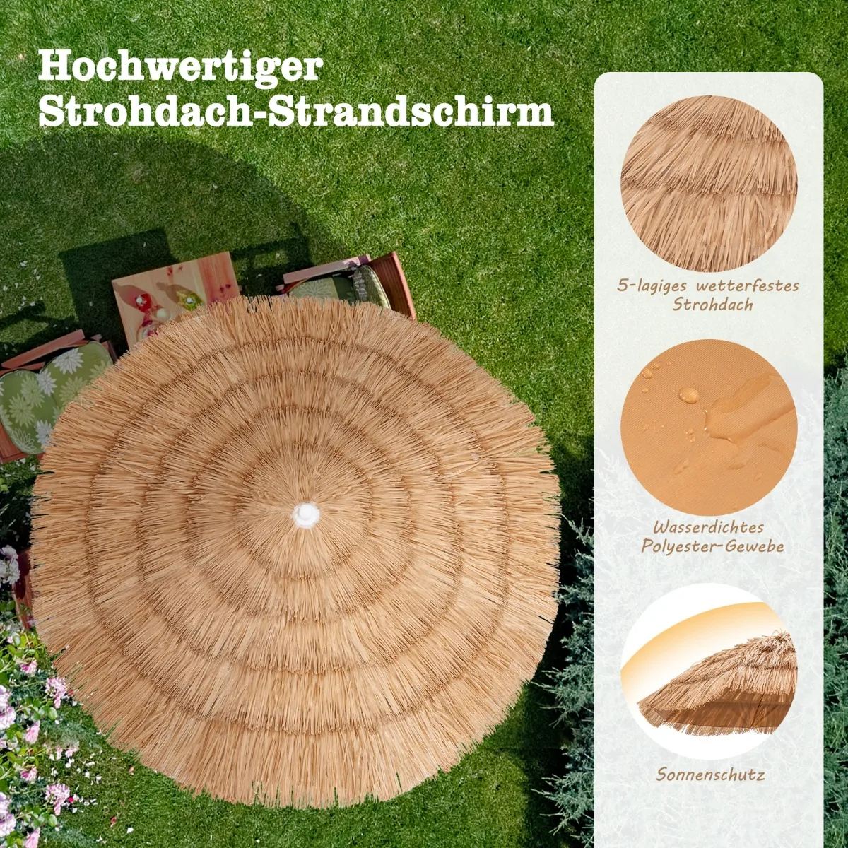 - 1 x šiaudais dengtas lauko skėtis nuo saulės