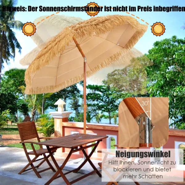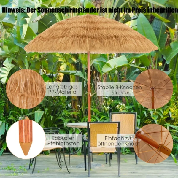- Mėgstamas tiek paplūdimiui, tiek sodui ar terasai – universalus lauko skėtis.