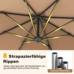 - Aliuminio stulpas ir 8 tvirtos briaunos užtikrina atsparumą vėjui ir saugumą naudojant.