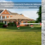 - Reguliuojamas skėčio galvutės kampas iki 30° vertikaliai ir 350° pasukimas horizontaliai efektyviam saulės blokavimui.