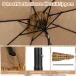 - Baldakimas reguliuojamas, leidžia pakreipti skėtį įvairiomis kryptimis šešėliui pritaikyti.