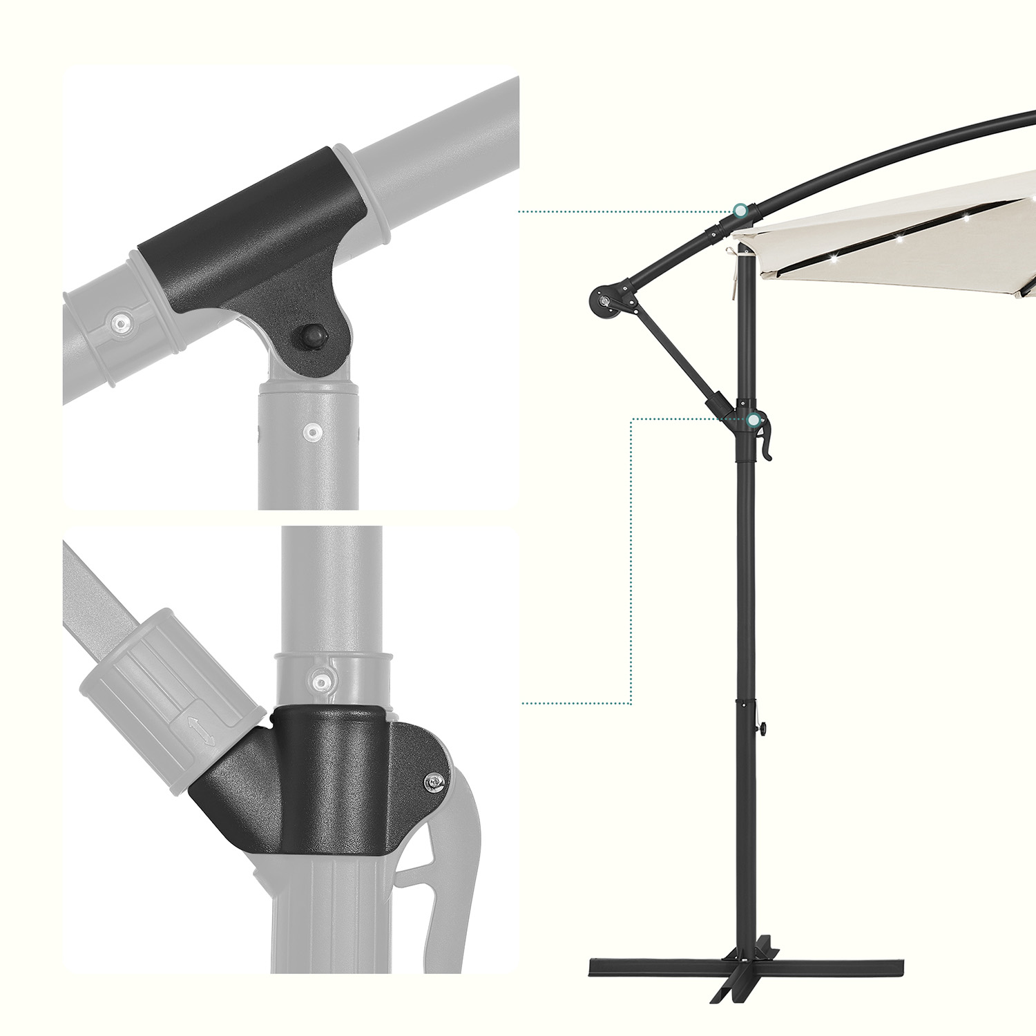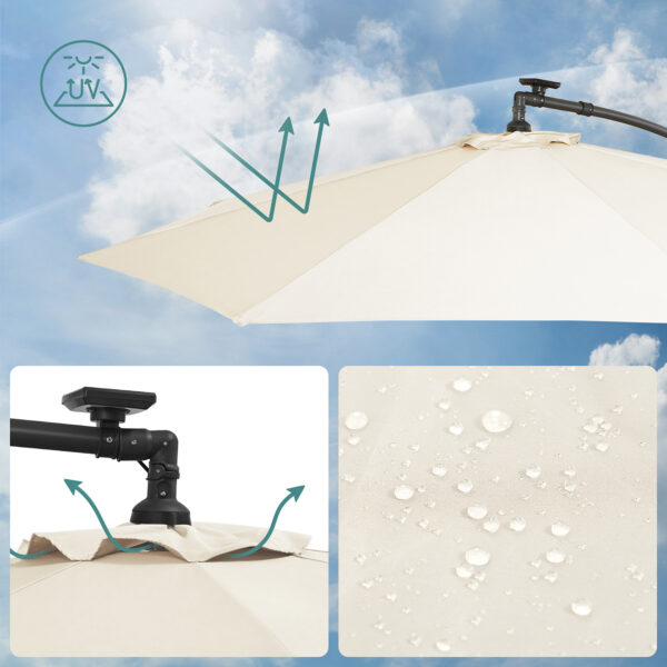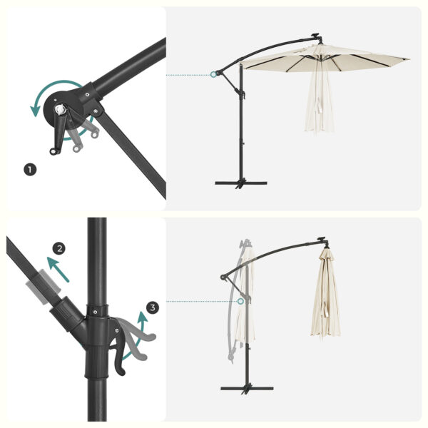 Šis lauko skėtis 300×300 cm, smėlio ir juodos spalvos, yra puikus pasirinkimas jūsų terasai ar sodui. Jo elegantiškas dizainas ir kokybiškos medžiagos užtikrina ilgaamžiškumą ir stilių.