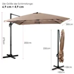 Lauko skėtis 300x300x273 cm, rudos ir juodos spalvos, skirtas patikimai apsaugai nuo saulės įvairiose lauko zonose. Pagamintas iš atsparių medžiagų, jis užtikrina ilgalaikį naudojimą net ir keičiantis oro sąlygoms.