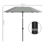 Su Outsunny skėčiu galite mėgautis daugybe vasaros dienų lauke. Šis sodo skėtis suteikia daug UV apsaugos ir atspalvio, kurį galite lanksčiai reguliuoti. Jo pakreipiama galvutė taip pat apsaugo nuo saulės apakimo. Pagamintas iš poliesterio, su tvirtu aliuminio stulpu ir aštuoniais stiklo pluošto statramsčiais, sodo skėtis suteikia malonų atspalvį visą vasarą.