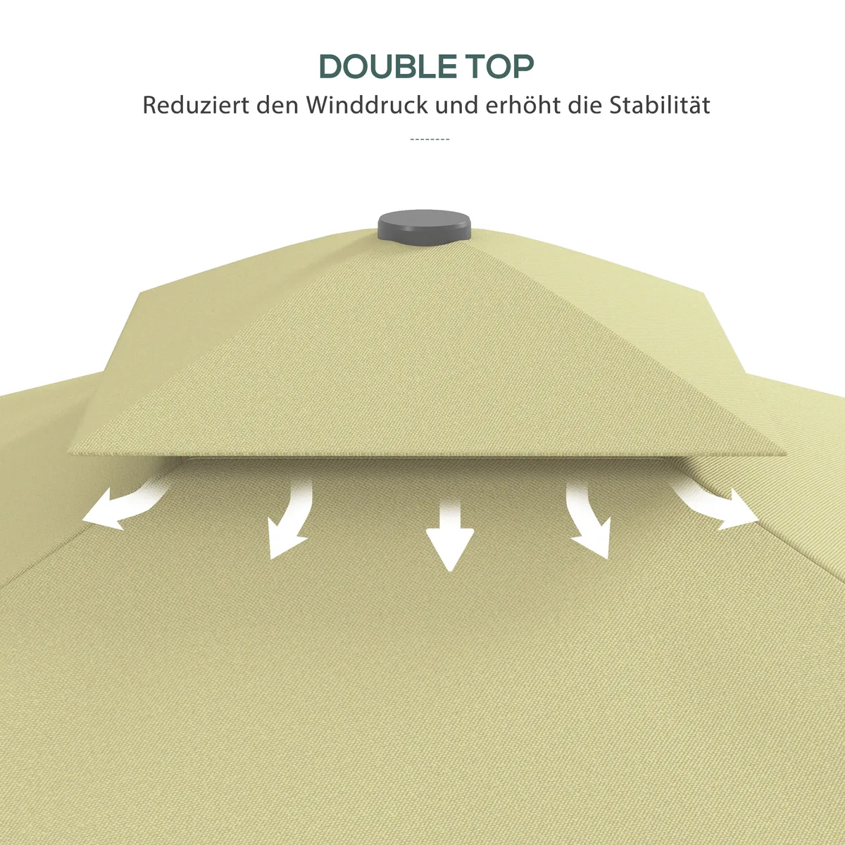 Mėgaukitės saule sode po mūsų dideliu konsoliniu skėčiu! Dėl sudėtingo dizaino su šoniniu stiebu įgyjate daugiau judėjimo laisvės ir aiškų, nepertraukiamą vaizdą. Rankinis švaistiklis leidžia lengvai atidaryti ir uždaryti, o saugus užraktas tvirtai laiko stogą. Patvarus poliesterio stogas su PA danga apsaugo nuo saulės ir šlapdribos. Su integruotu skėčio pagrindu ir ventiliaciniu stogeliu optimaliam stabilumui ir ventiliacijai.