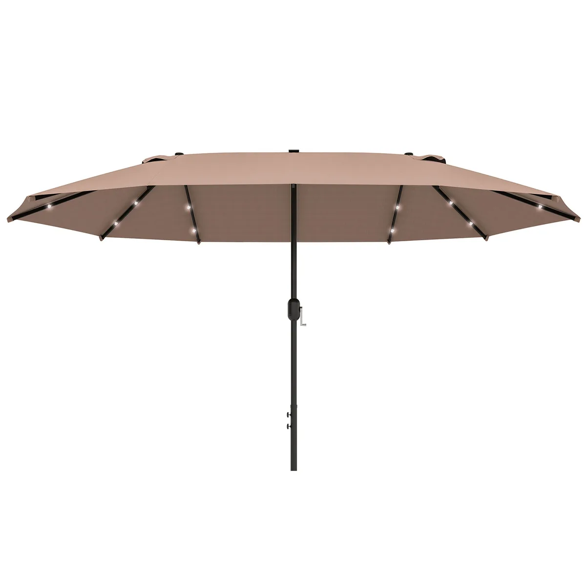 Tegul jūsų sodas ar terasa spindi su šiuo dvigubu skėčiu iš Outsunny! Skoningai suprojektuotas skėtis turi 36 LED lemputes, pritvirtintas prie statramsčių, todėl jums užteks šviesos skaitymui ar kitiems pomėgiams net ir tamsiu paros metu. Dienos metu didelis dvigubas sodo skėtis apsaugo jus nuo tiesioginių saulės spindulių. Jei norite pagražinti savo sodą, tuomet šis sodo skėtis yra būtent tinkamas pasirinkimas.