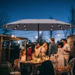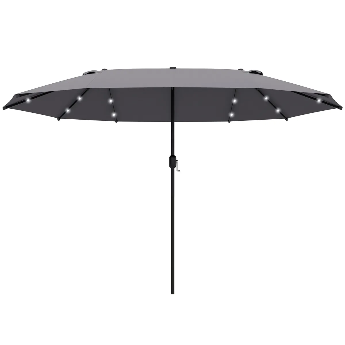 Tegul jūsų sodas ar terasa spindi su šiuo dvigubu skėčiu iš Outsunny! Skoningai suprojektuotas skėtis turi 36 LED lemputes, pritvirtintas prie statramsčių, todėl jums užteks šviesos skaitymui ar kitiems pomėgiams net ir tamsiu paros metu. Dienos metu didelis dvigubas sodo skėtis apsaugo jus nuo tiesioginių saulės spindulių. Jei norite pagražinti savo sodą, tuomet šis sodo skėtis yra būtent tinkamas pasirinkimas.