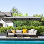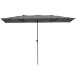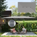 - ✔ Šis dvipusis dvipusis skėčiais suteikia daug šešėlių, tinka 4-6 žmonių terasos komplektui ir įvairiems lauko renginiams. Atsparus UV spinduliams ir išlaiko spalvą