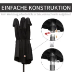 - ✔ 2 dalių skėčio stulpas ir 12 metalinių statramsčių užtikrina aukštą stabilumą