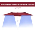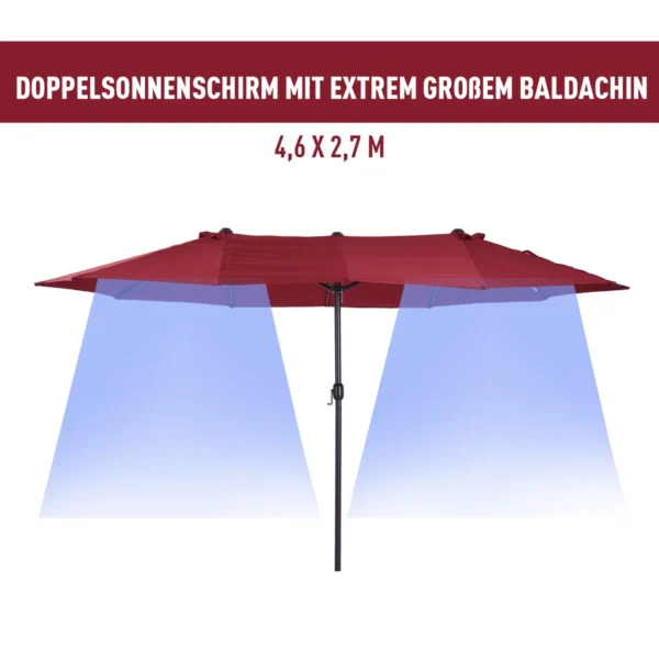 Du kartus geriau! Visiems, ieškantiems šiek tiek daugiau šešėlio šiltomis dienomis, mūsų aukštos kokybės dvigubas skėtis iš Outsunny puikiai tiks. Jūsų sodo skėtis visada gerai atrodo sode, terasoje, paplūdimyje ar kartu keliaujant kempinge. Atidarymas ir uždarymas yra vaikiškas žaidimas naudojant pritvirtintą rankinį švaistiklį. Dvylika aukštos kokybės metalinių statramsčių užtikrina aukštą stabilumą. Vasara gali ateiti!