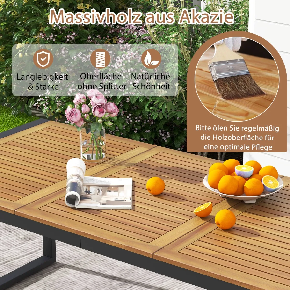 - 8 vietų stačiakampis lauko stalas, tinka sodui, terasai ar kiemui.