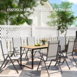 Patirkite malonumą pietauti lauke su orui atspariu sodo stalu Outsunny, kuriame stilingas dizainas dera su praktišku naudojimu. Šis nedidelis šešių asmenų sodo stalas yra medinis, o stalviršis yra tvirtas ir lengvai valomas. Milteliniu būdu dengtas, nerūdijantis sodo stalo rėmas žada ilgalaikį malonumą sode.
