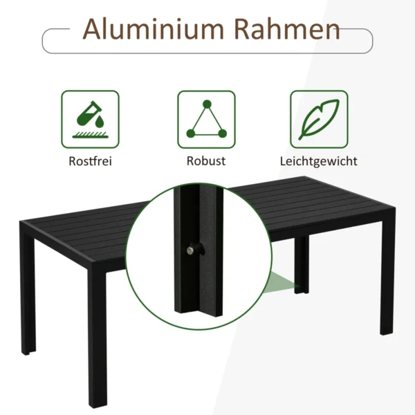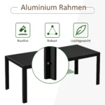 Elegantiškas balkono stalas iš Outsunny sujungia lengvumą ir stabilumą su madingu dizainu. Nesvarbu, ar kaip valgomojo stalas svetainėje, ar kaip balkono ir terasos stalas, jis visada sukuria stilingą atmosferą! Didelis terasos stalas suteikia pakankamai vietos jūsų svečiams ir yra itin lengvai valomas, atsparus oro sąlygoms ir labai stabilus. Nepriklausomai nuo to, į kurią grupelę susirinksite, ar pasimėgauti šašlykais su draugais, ar pabendrauti su kava, visada puikiai aprūpinsite kokybišką šoninį stalą.