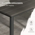 Suburkite šeimą ir draugus su šiuo Outsunny 4 asmenų sodo stalu. Stalas yra patvarus ir lengvai valomas, nes sudarytas iš milteliniu būdu dengto metalinio rėmo ir HDPE viršaus. Valymas yra vaikiškas žaidimas drėgna šluoste. Tai suteikia jums daugiau laiko mėgautis lauko veikla. Dėka skėčio angos, galėsite pasistatyti mėgstamą skėtį ir apsisaugoti nuo saulės.
