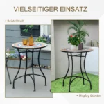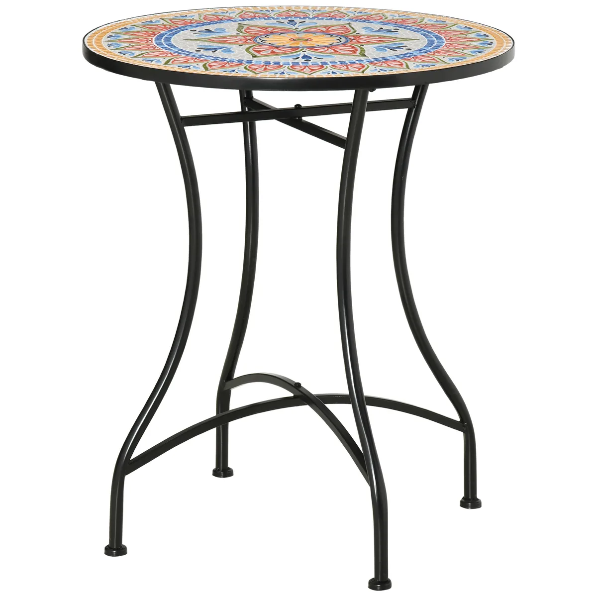 Jei norite unikaliai papildyti savo sodo baldus, pasirinkite šį nuostabų stalą iš Outsunny. Jis pagamintas iš tvirto ir patvaraus milteliniu būdu dengto metalinio rėmo, o ant jo yra gražus keraminis mozaikinis stalviršis, atsparus dėmėms ir lengvai valomas. Puikiai tinka elegantiškam vakarienei ir poilsiui su draugais visą dieną.