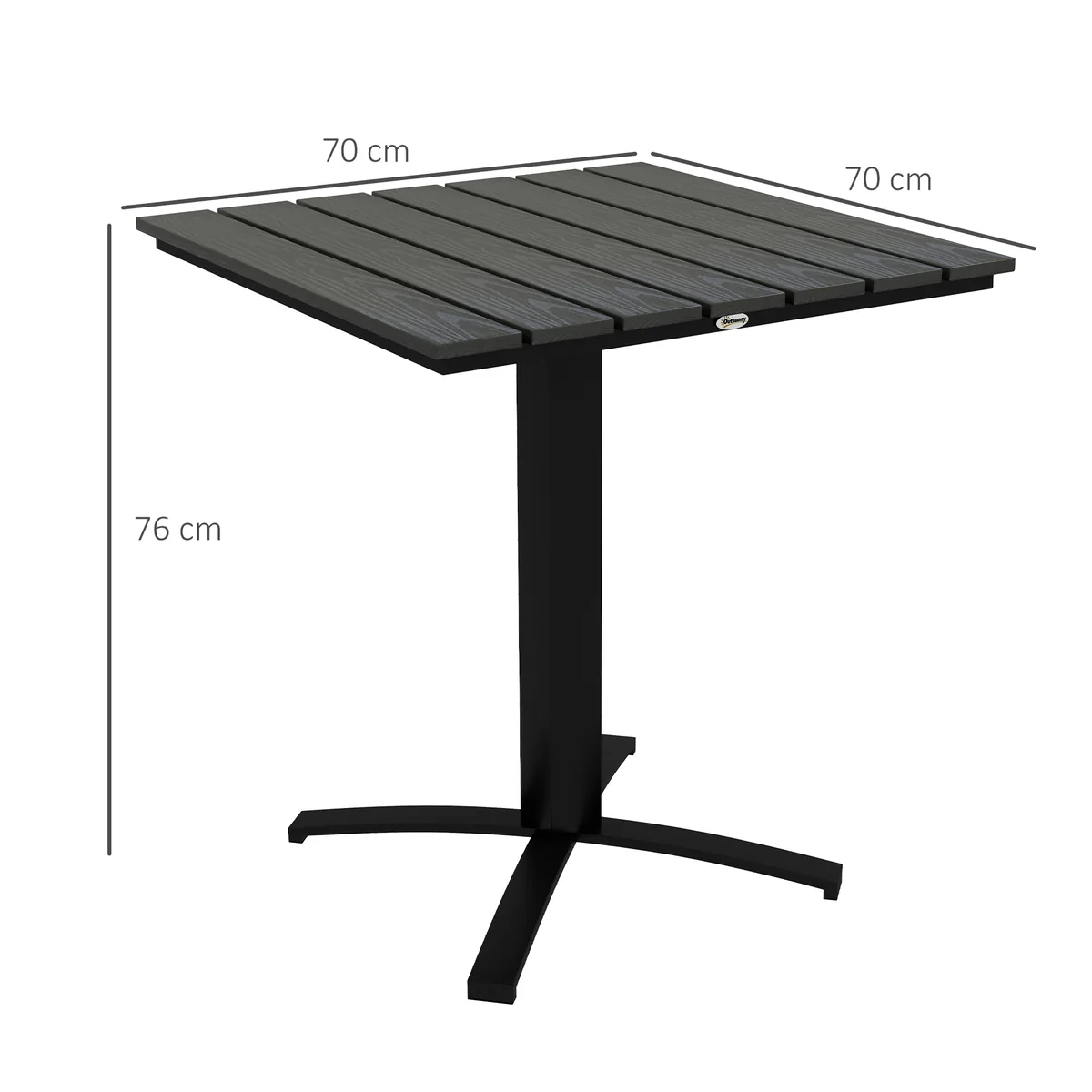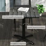 Atraskite puikų kompanioną bendraujant lauke: mūsų erdvus terasos stalas gali tilpti iki 4 žmonių. Dėl lentjuosčių stalviršio jis greitai išdžiūsta po lietaus. Kokybiškas plastiko ir medžio medžiagų mišinys ne tik suteikia stalui elegantišką išvaizdą, bet ir užtikrina ilgaamžiškumą. Dėl stabilaus, bet lengvo aliuminio rėmo su milteliniu dažymu stalas yra ypač tvirtas ir lengvai valdomas.