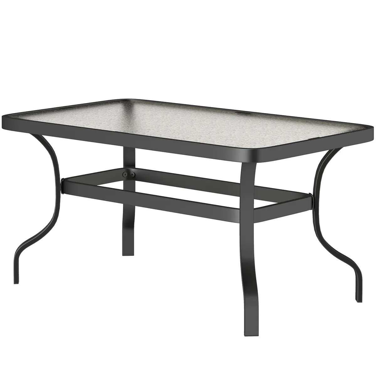 Padidinkite sodo malonumą su elegantišku balkono stalu Outsunny. Stilinga forma puikiai tiks bet kuriame sode ar terasoje. 3,5 cm storio grūdinto stiklo stalviršis su stilingu bangų raštu ir užapvalintais kavos staliuko kampais sujungia eleganciją ir saugumą. Milteliniu būdu dengtas metalinis balkono stalo rėmas žada ilgalaikį malonumą ir bus jūsų lauko renginių akcentas.