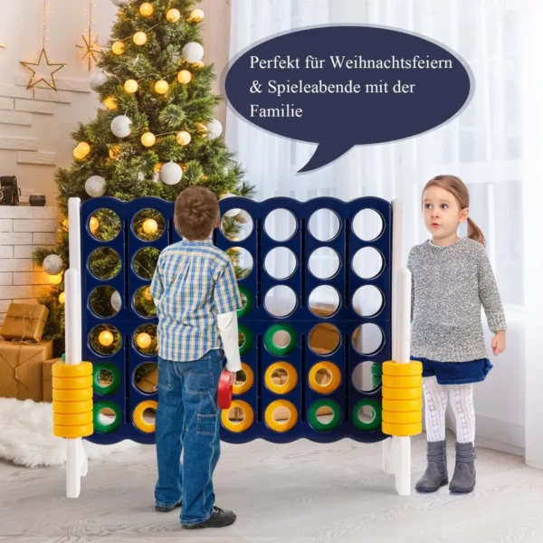 • Milžiniško žaidimo „Keturis iš eilės“ dydis – 120 x 42 x 104 cm, aukštis 104 cm tinkamas ir vaikams, ir suaugusiems.