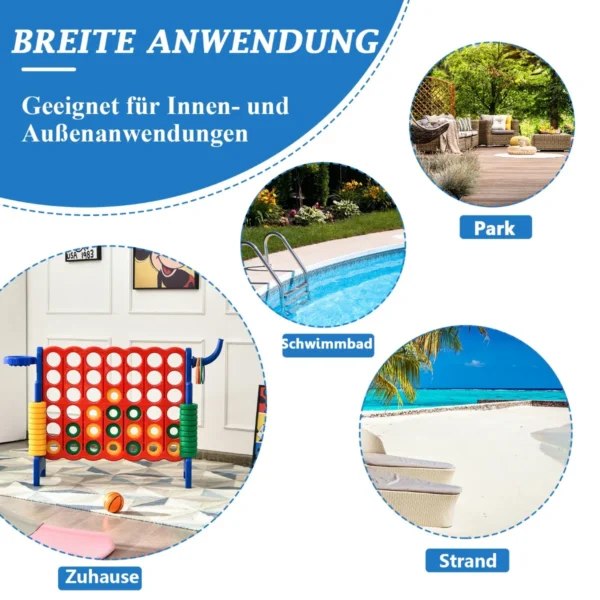 Lauko žaidimas keturis iš eilės – didelė klasikinių žaidimų versija, tinkanti tiek vaikams, tiek suaugusiems. Šis 84x33x79 cm dydžio žaidimas puikiai tinka pramogoms lauke ar namuose. Žaidimas skatina rankų ir akių koordinaciją, loginį mąstymą bei strateginį mąstymą.