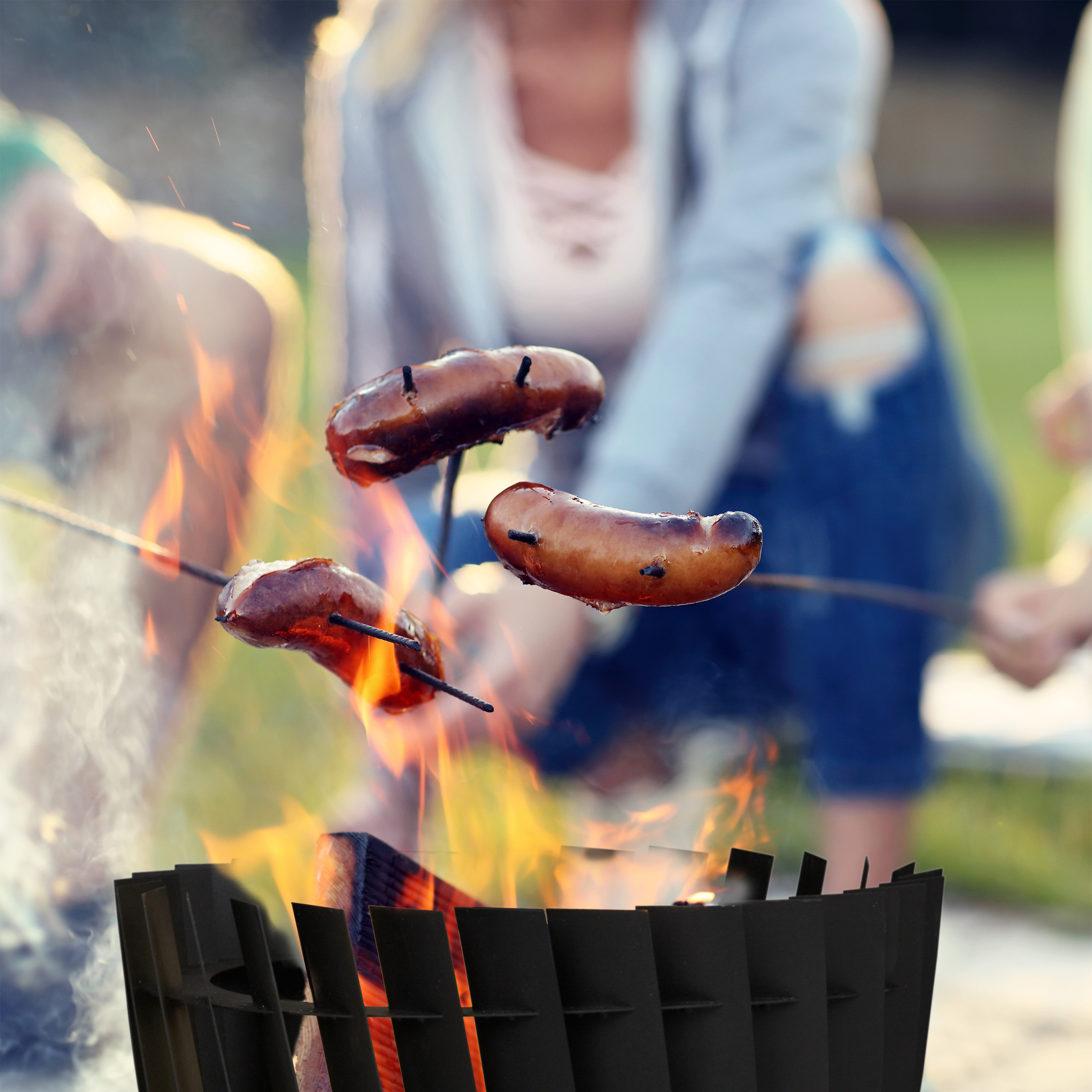 Įneškite šilumos ir jaukumo į savo sodą ar terasą su šiuo moderniu degančiu krepšiu. Mėgaukitės poilsio valandomis su šeima ar draugais, sėdėdami priešais spragsinčią laužą. Šis juodas ugnies krepšelis ne tik suteikia pakankamai vietos zefyrams, dešrelėms ar duonos lazdelėms kepti, bet ir tampa stilingu jūsų lauko erdvės akcentu.