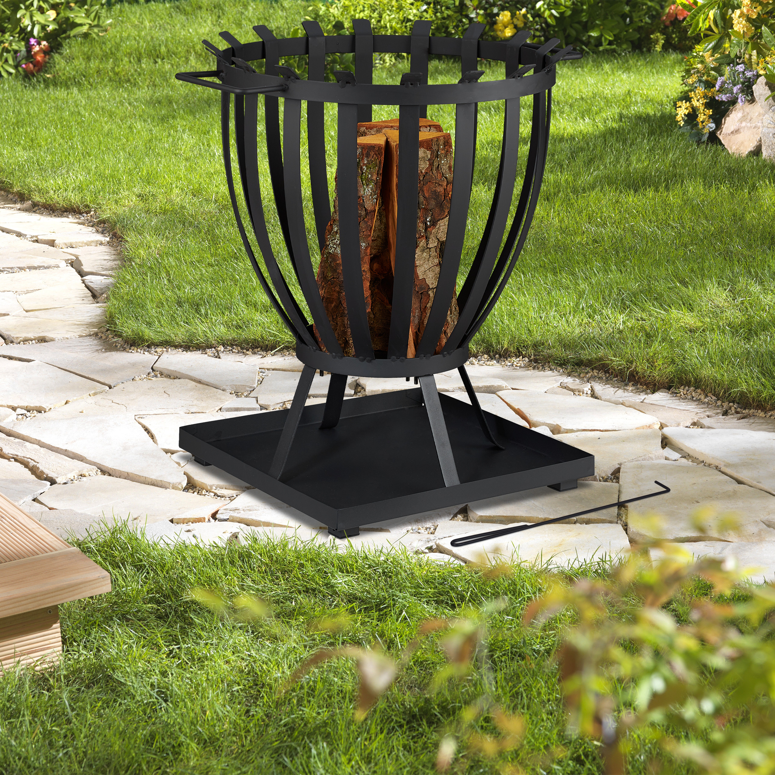 • Saugumas: Komplekte esantis pokeris padeda lengvai užkurti ugnį, o pagrindo plokštė apsaugo paviršių nuo žarijų ar pelenų.