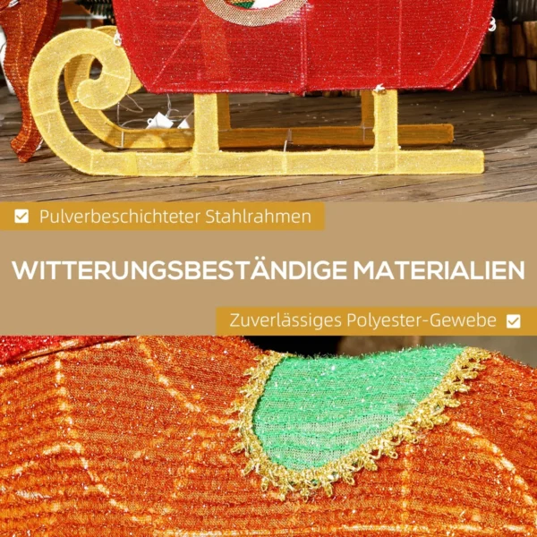 Paverskite savo sodą žiemos stebuklų šalimi su ryškiomis Outsunny kalėdinėmis dekoracijomis. Mūsų šventinis elnių ir rogių rinkinys, gražiai ir spalvingai dekoruotas, labai pagerins jūsų kalėdines dekoracijas. Šiltai baltos LED kalėdinės lemputės sukuria jaukią atmosferą naktį. Idealiai tinka naudoti viduje ir lauke, kad praskaidrintų šventes.
