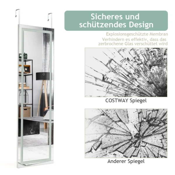 - Veidrodyje įmontuota nedūžtanti membrana, apsauganti nuo stiklo šukių išsibarstymo.
