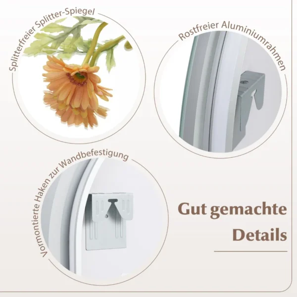 - Pagamintas iš nedūžtančio sidabrinio stiklo ir aliuminio rėmo, atsparaus rūdims.