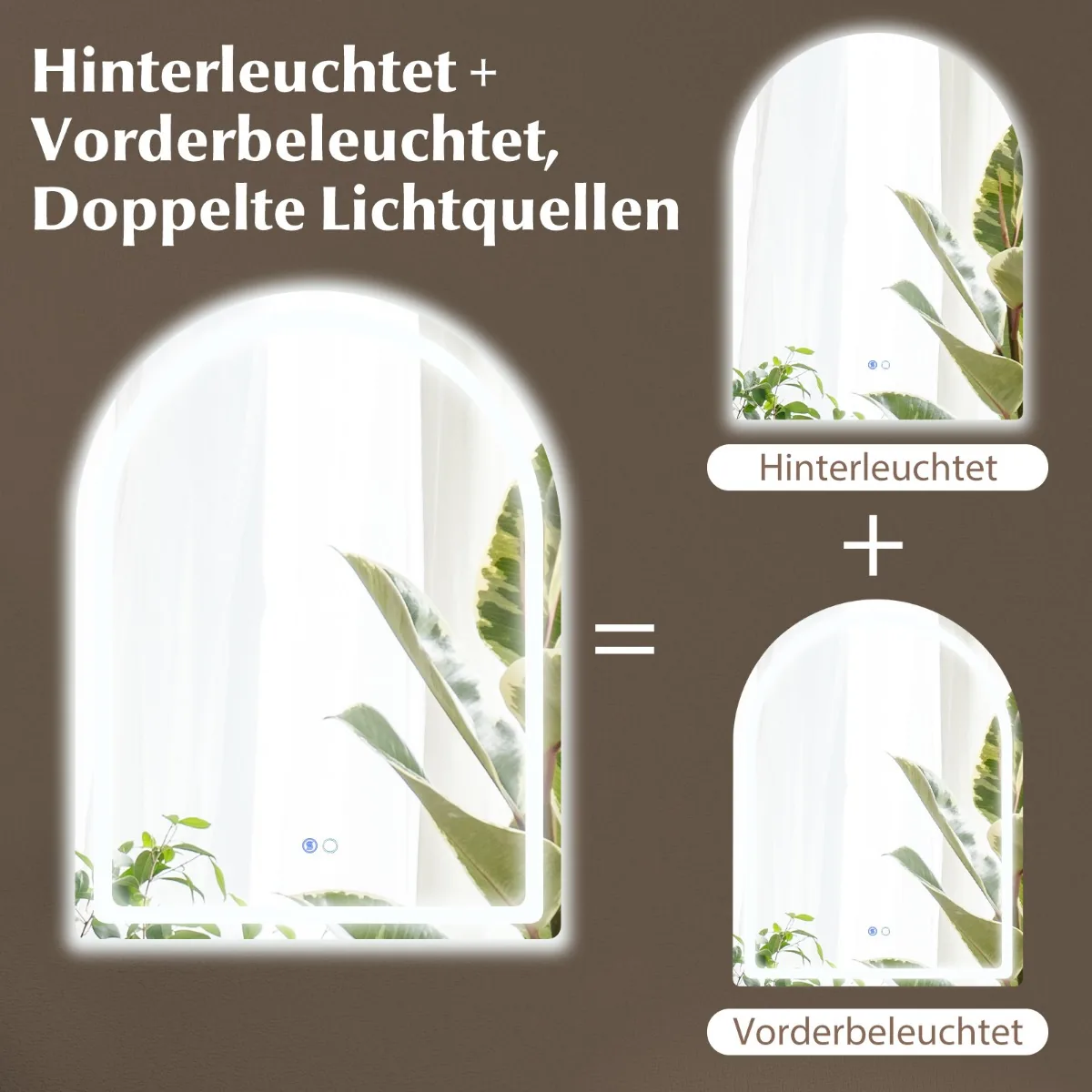- Veidrodis turi priekinį ir galinį LED apšvietimą, kuris sukuria aiškų ir švelnų apšvietimą.