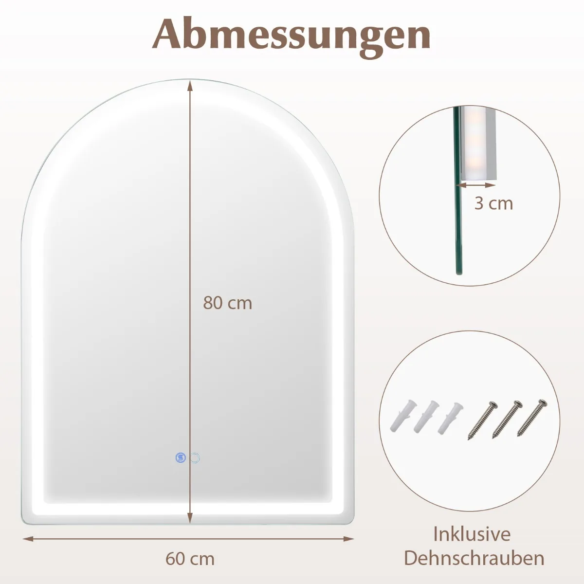 - 1 x LED sieninis vonios veidrodis 3x80x60cm, sidabrinės spalvos