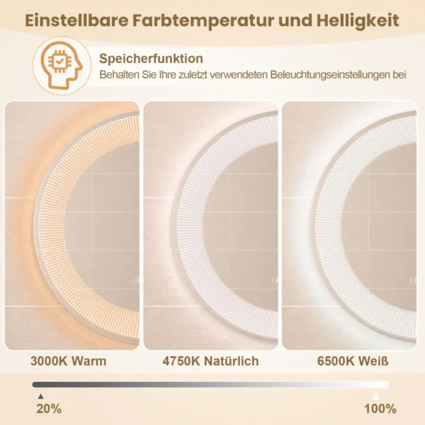 - 3 spalvų temperatūros ir reguliuojamas ryškumas su integruota atminties funkcija.