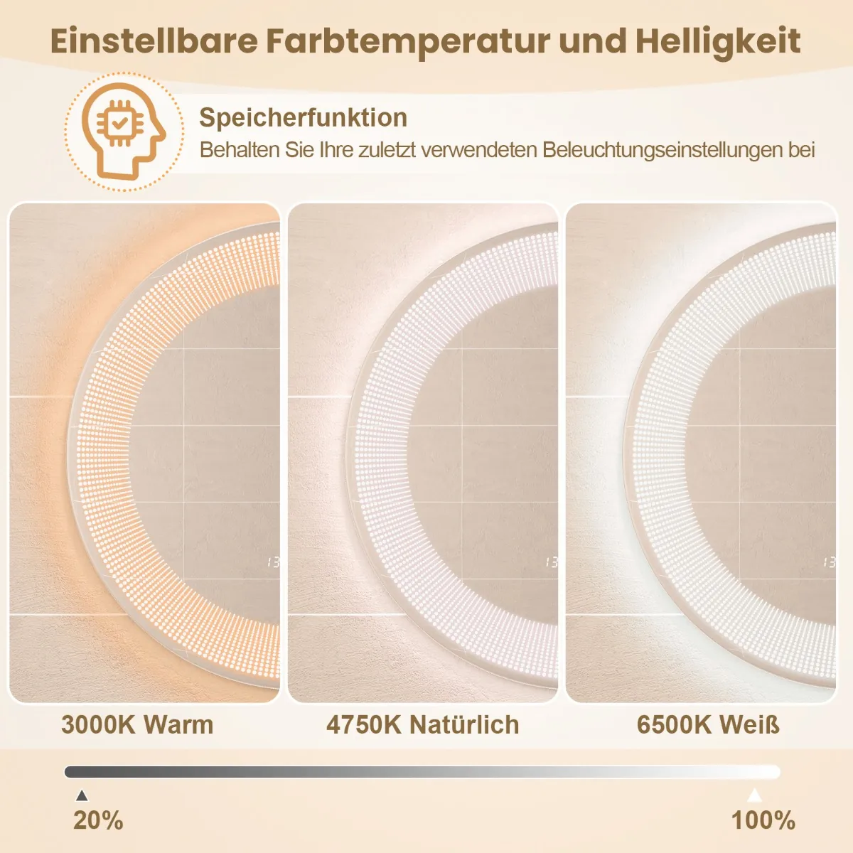 - LED lemputės su 3 spalvų temperatūromis: šilta (3000K), natūrali (4750K), šalta (6500K).