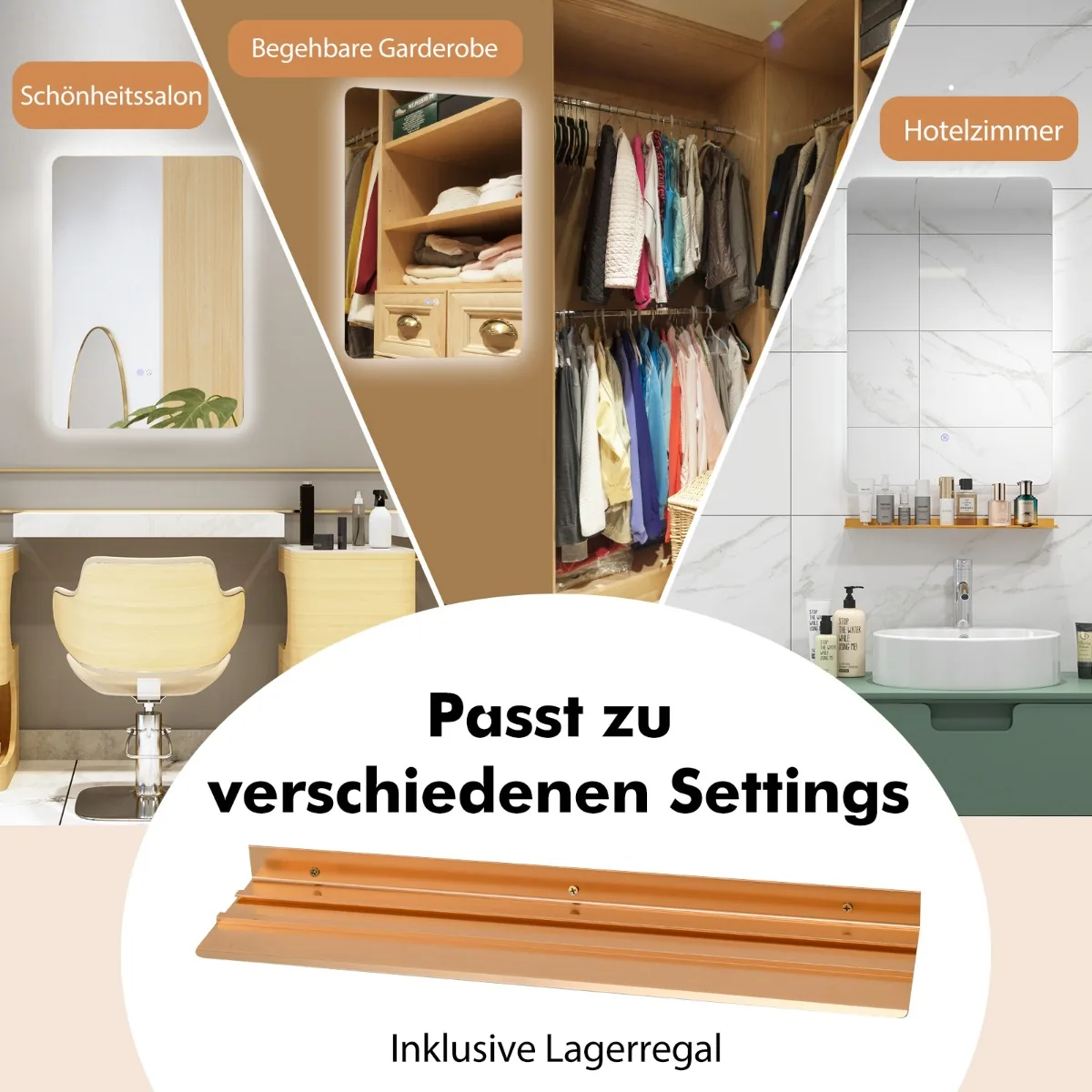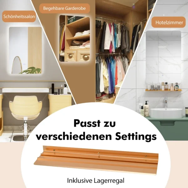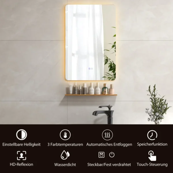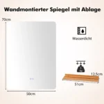 LED sieninis veidrodis 70x50x3,5 cm sidabrinės spalvos puikiai tinka vonios kambariui ar kitoms patalpoms. Jis pasižymi reguliuojamu apšvietimu su trimis šviesos temperatūromis, bepakopiu pritemdymu ir rasojimo šalinimo funkcija, užtikrinančia aiškų veidrodžio paviršių drėgnose sąlygose.
