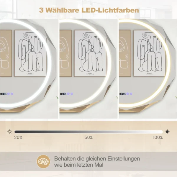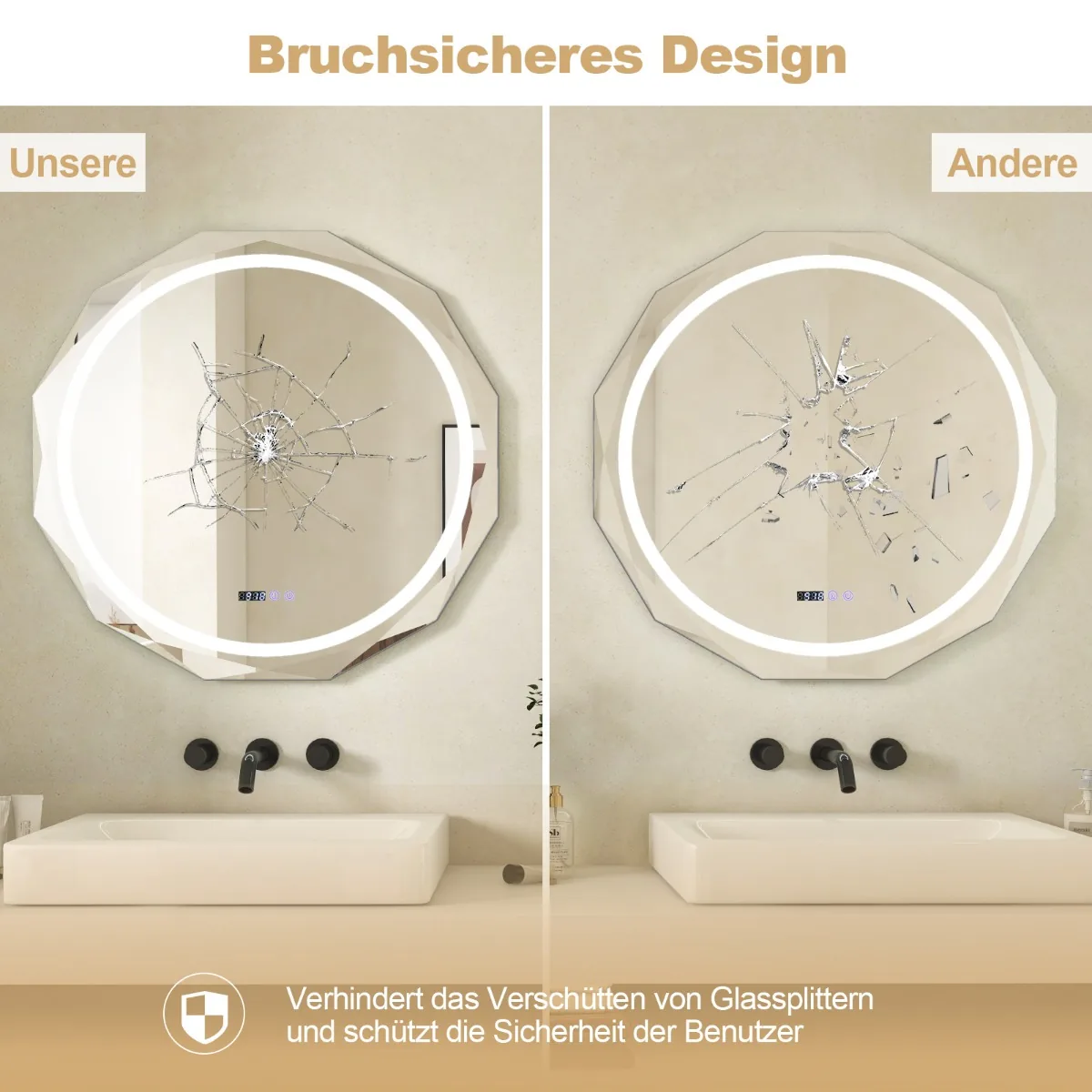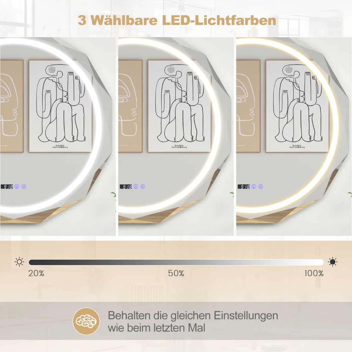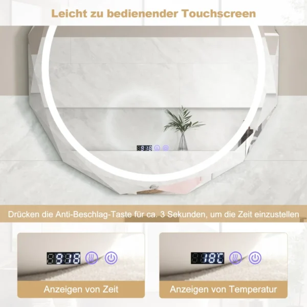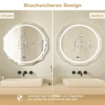- Nerasojantis LED sieninis veidrodis, išlaikantis aiškų atspindį net po dušo.