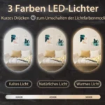 - 3 apšvietimo spalvų režimai: šilta (3000 K), natūrali (4500 K), šalta (6000 K).