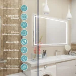 - Veidrodis atsparus vandeniui pagal IP44 standartą, tinkamas naudoti drėgnose patalpose.