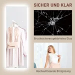 Priverskite bet kurį kambarį spindėti su HOMCOM viso ilgio veidrodžiu. Didelis 120 x 40 cm matmenų veidrodis su apšvietimu suteikia jums aiškų ir aiškų vaizdą nuo galvos iki kojų. Pritemdomos LED juostelės su išmaniaisiais jutikliniais valdikliais leidžia reguliuoti apšvietimo nuotaiką pagal savo pageidavimus. Elegantiškas, berėmio dizaino prieškambario veidrodis su užapvalintais kampais ne tik užtikrina saugumą, bet ir suteikia jūsų namams šiuolaikiškumo. Puikiai tinka bet kokiam kambariui.