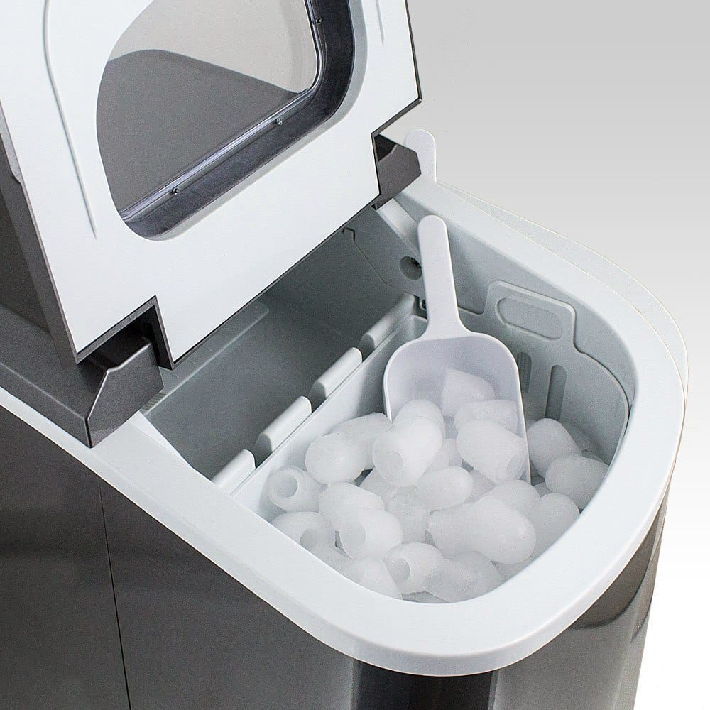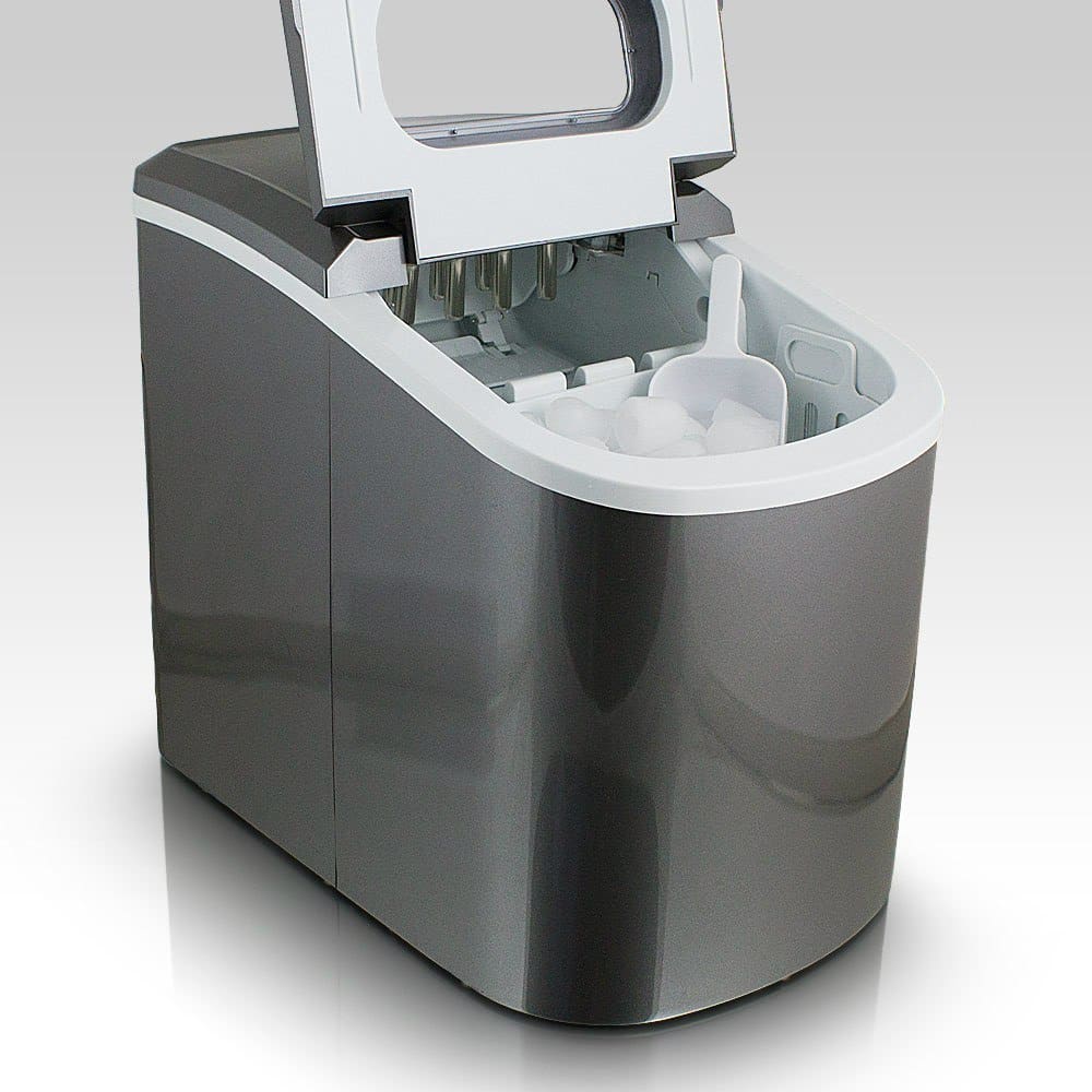 ; ICE CUBE MACHINE COLOR GRAPHITE Kitos spalvos galimos kituose aukcionuose. APRAŠYMAS: Kompaktiškas, mobilus ledo gaminimo aparatas. Nepakeičiamas greitam ir paprastam ledo kubelių paruošimui, tiesiog pripildykite vandens baką ir paspauskite mygtuką renkantis tinkamo dydžio ledo kubelius. Jis pasižymi patikimumu ir tyliu veikimu. Nešiojamas, lengvas, kompaktiškas ir nereikalauja nuolatinio vandens jungties. Puikiai tinka naudoti namuose. Per 24 valandas jis pagamina maždaug 10–12 kg ledo kubelių, o po 12 minučių – 9 kubelių ledo porcijas.; Dėl unikalaus dizaino ir spalvų jis puikiai papildo bet kurią virtuvę, biurą, restoraną, barą ir barą. RINKINĖJE ĮSKAIČIUOTA: – ledo aparatas – kaušelis – naudojimo instrukcija Techniniai duomenys: Matmenys: 350 mm x 250 mm x 325 mm (L / B / A) Vandens bakas: 2,2 litro Svoris: 8 ,3 kg Spalva: Grafitas Talpa: 0,8 kg ledo per dieną galia: 10–15 kg ledo Galia: 220–240 voltų 50/120 vatų