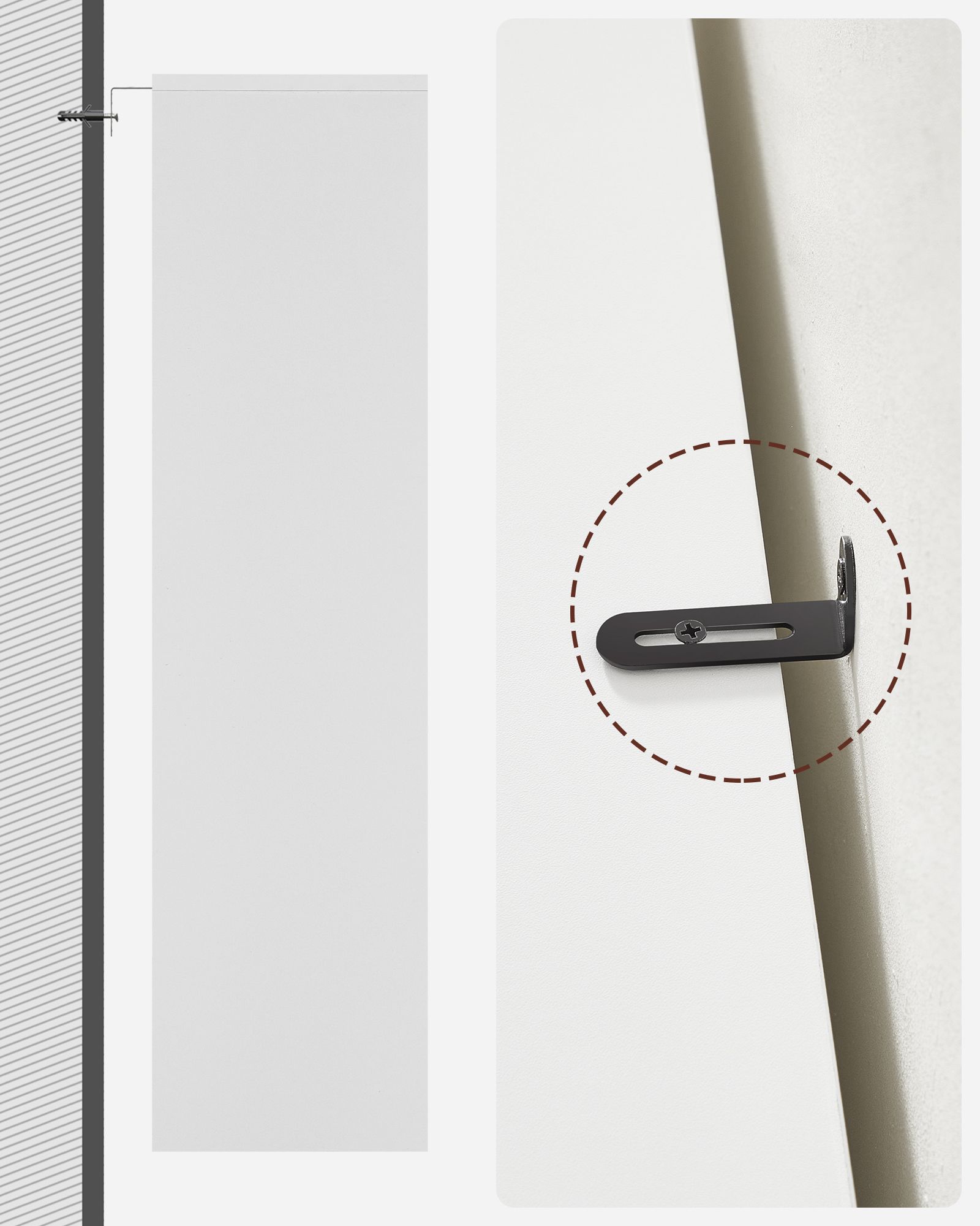 Ši elegantiška ir funkcionali lentyna yra puikus pasirinkimas tiems, kurie vertina stilių ir praktiškumą. Jos minimalistinis dizainas ir balta spalva puikiai dera prie bet kokio interjero, suteikdami erdvei šviesos ir švaros pojūtį.