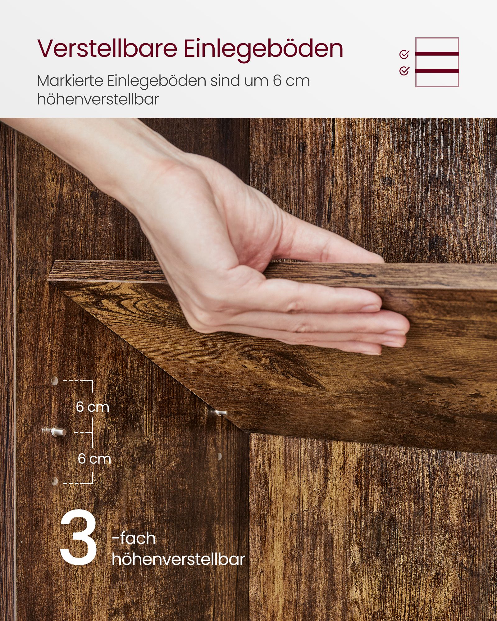 Ši lentyna yra pagaminta iš aukštos kokybės medžio drožlių plokštės, kuri užtikrina ilgaamžiškumą ir stabilumą. Vintažinė ruda spalva suteikia šilumos ir jaukumo jūsų namams, o kompaktiški matmenys leidžia ją lengvai pritaikyti net ir mažesnėse erdvėse.