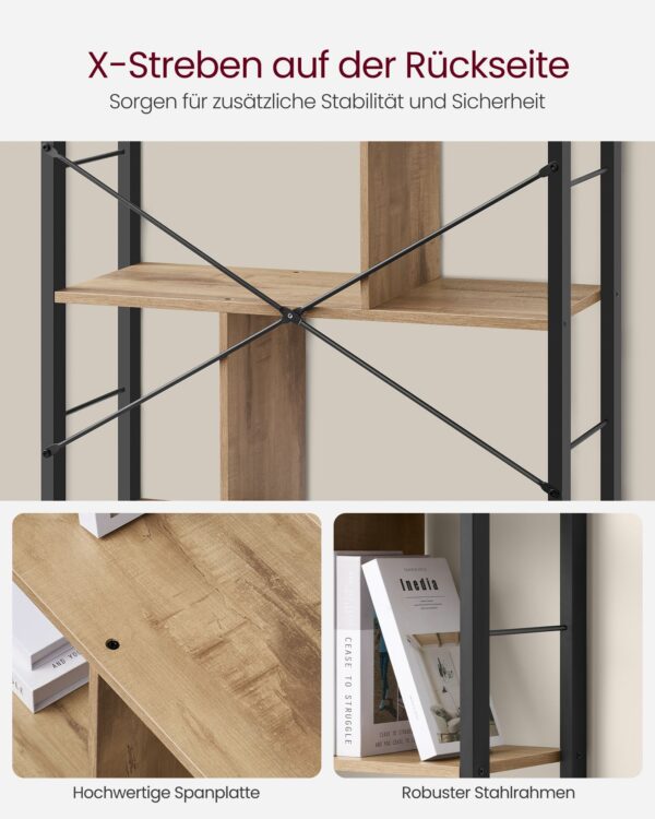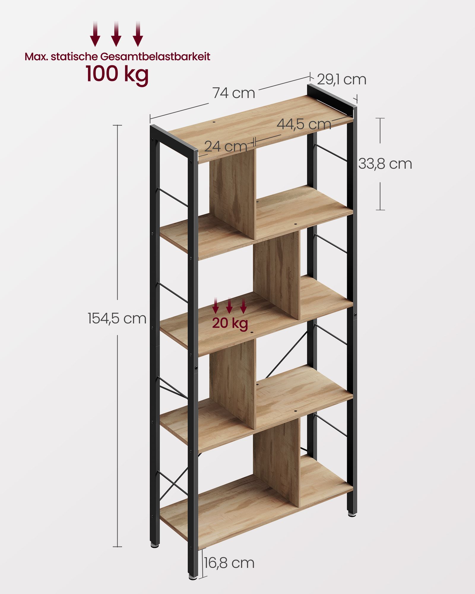 - Maksimali keliamoji galia vienam lygiui: 20 kg – kiekvienas lentynos lygis gali saugiai laikyti įvairius daiktus, nuo knygų iki dekoratyvinių elementų.